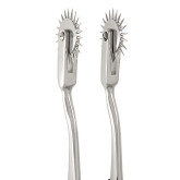 This Bi-Polar Wartenberg Pinwheel from ElectraStim gives localised pin-prick electrified sensations to the nerve endings, with its dual spiked wheels and solid brass plated construction.