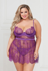 - Eyelash Lace Babydoll And Panty Set - Plus Size