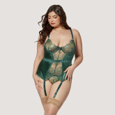 - Eyelash Lace & Shining Satin Bustier in Emerald