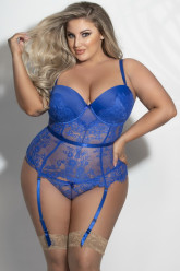 - Flawless Blue Eyelash Lace Bustier - Plus Size