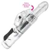 Now what makes this Rabbit different is that it has a strategically placed vibrating stimulation bullet that buzzes in time with the clitoral stimulator and is designed to stimulate your G spot.