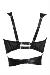 The Lexi soft cup bra envelops your curves in oh-so soft leather, which feels as alluring as it looks. This luxury bra has two decadent leather panels that wrap sensually around you and hook together at the back, with a sly wink to a bondage-inspired aesthetic. Adjustable rear back straps and shoulder straps allow you to create your perfect fit. Boldly fusing classic with kinky, this piece of designer lingerie truly blurs the line between underwear and outerwear, allowing you to make a bold statement whatever your mood. Versatile but unforgettable, it looks incredible worn alone or paired with a jacket or shirt.
