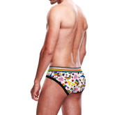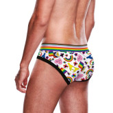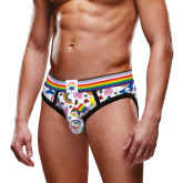 Completed with black leg piping for a flattering cut, what really makes these briefs stand out is the positive design work across the body of it, featuring rainbows, flags, peace signs and much more. Pride is always alive when wearing these gorgeous briefs!