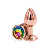 - Rear Assets Rose Gold with Rainbow Jewel Butt Plug - Small