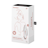 The Satisfyer Prêt-à-porter impresses with its glamorous and elegant design. Equipped with a body made of silky-matt silicone, an upper part made of textured real leather and noble, rose gold-colored metal details, it’s not optically attractive – due to its ergonomic shape and the sensual haptics it nestles perfectly into your hand, delighting your clitoris with breathtaking Satisfyer pressure wave stimulation.