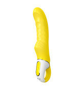 The Satisfyer Yummy Sunshine has a lot to offer: A ribbed structure, strong vibrations and a smooth shaft made of solid silicone - all packed into a playful, cheerful design. The curved vibrator hits your G-spot directly, stimulating you with its sensually ribbed texture. You can choose from 12 vibration programmes consisting of 6 intensities and 6 vibration patterns.