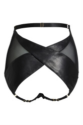 These luxurious high waist knickers allow you to play the tease, as soft leather panels cross over at the back to leave a peek-a-boo cut out that frames your curves deliciously. An adjustable waistband and leg elastics ensure this divine piece of luxury lingerie fits you perfectly.