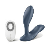 Ergonomically shaped anal plug with a grooved perineum stimulator. Pleasantly flexible for an ideal fit and made of silky silicone. Stimulates prostate and perineum with 2 motors that are separately adjustable and features 10 whisper quiet vibration modes each. Includes remote control. Compatible with the We-Connect app for IOS and Android via bluetooth. There you can create individual stimulation programs and conveniently control Vectors vibrations with your smartphone. The app also features a chat, voice and video function to allow long distance sexual closeness. As a security measure the bluetooth interface only connects with 2 devices (remote control and 1 additional smartphone). To change the control unit a reset needs to be done. Can be recharged with the included Magnetic Charger. Waterproof.